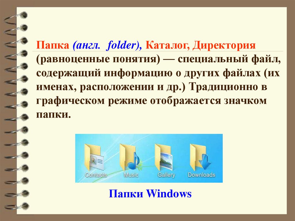 Папка (англ. folder), Каталог, Директория(равноценные понятия) — специальный файл,