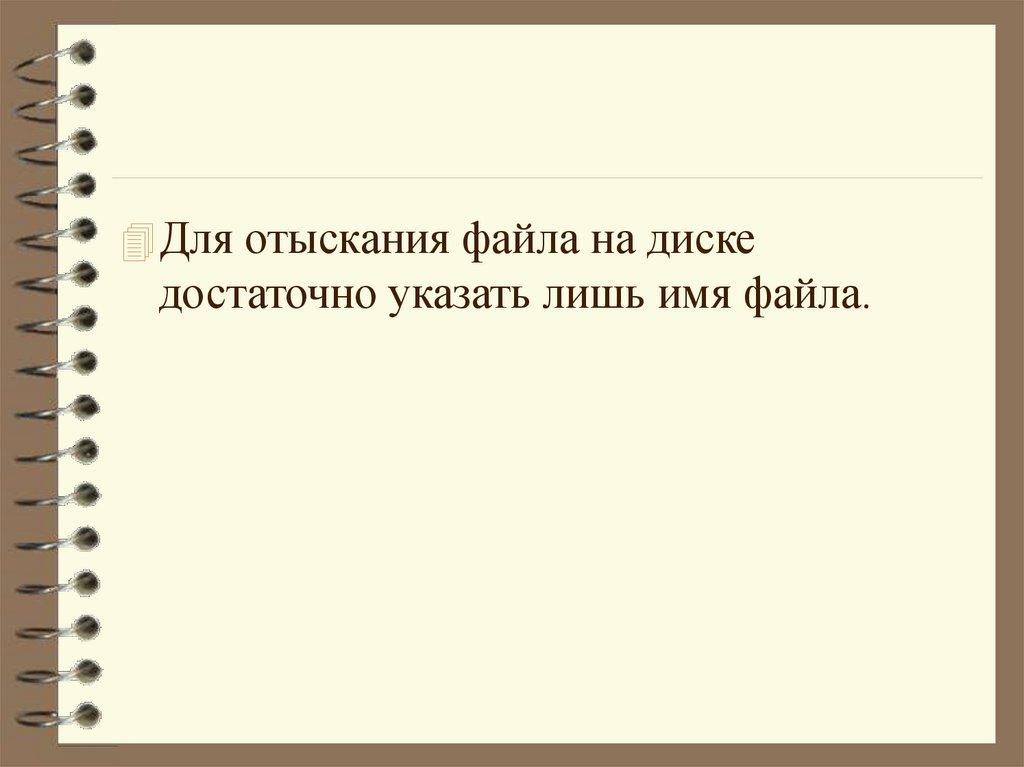 Для отыскания файла на дискедостаточно указать лишь имя файла.