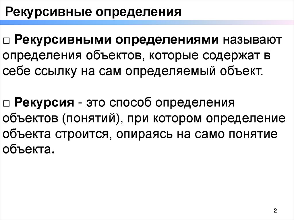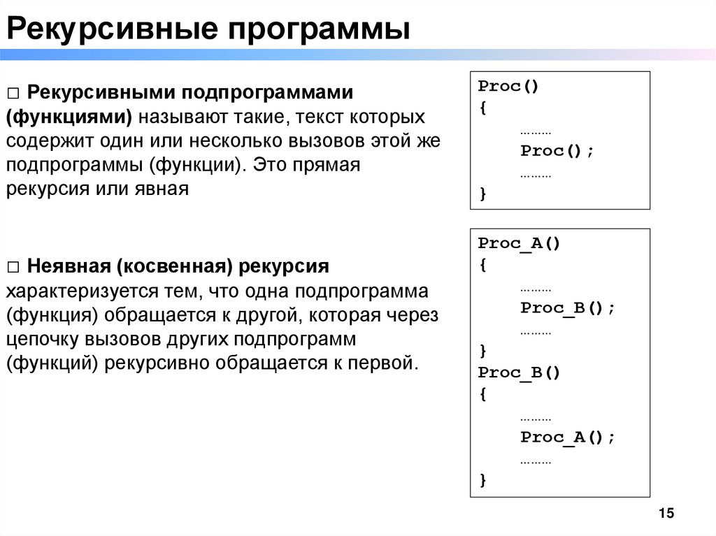 Рекурсивные программы□ Рекурсивными подпрограммами