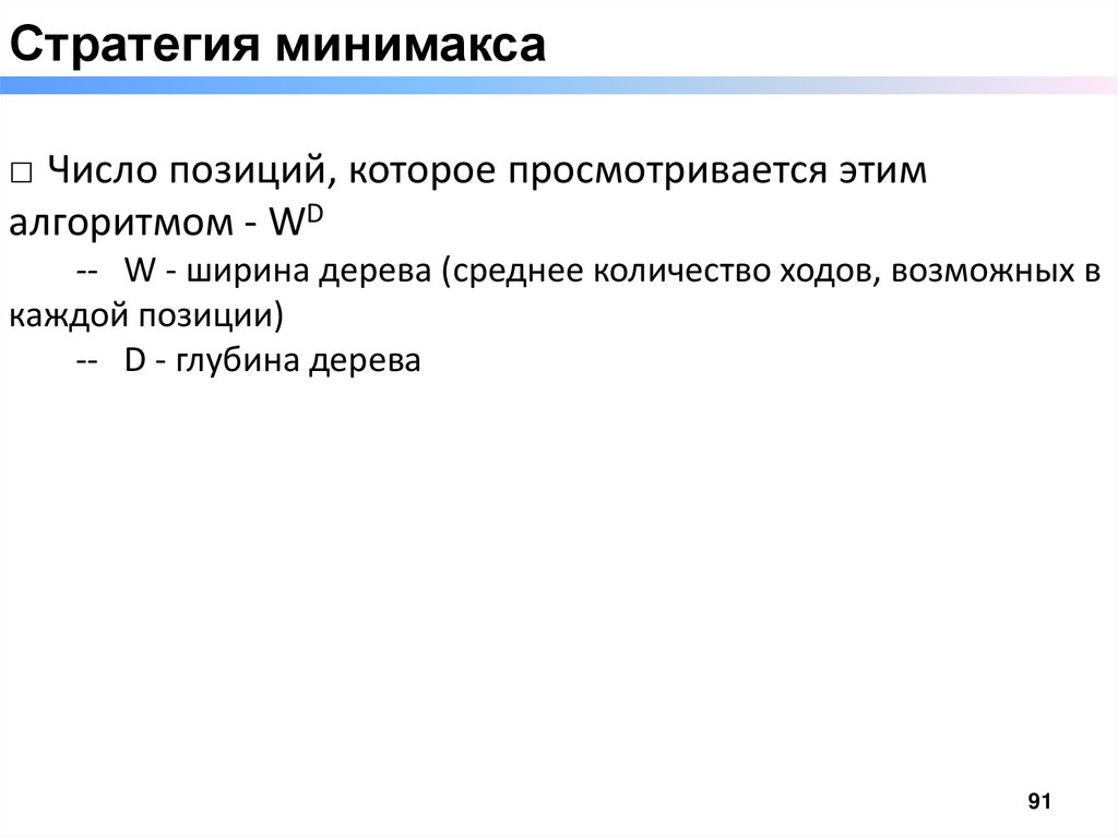 Стратегия минимакса□ Число позиций, которое просмотривается этим