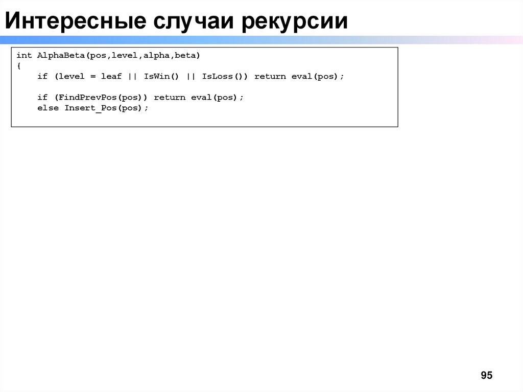 Интересные случаи рекурсииint AlphaBeta(pos,level,alpha,beta)