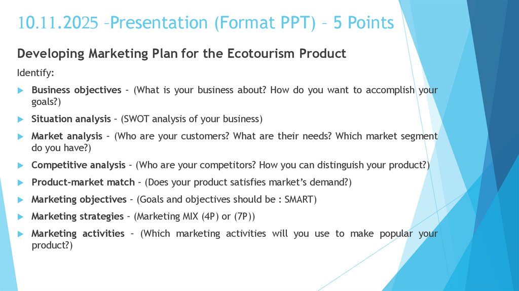 10.11.2025 –Presentation (Format PPT) – 5 PointsDeveloping Marketing Plan for the Ecotourism Product
