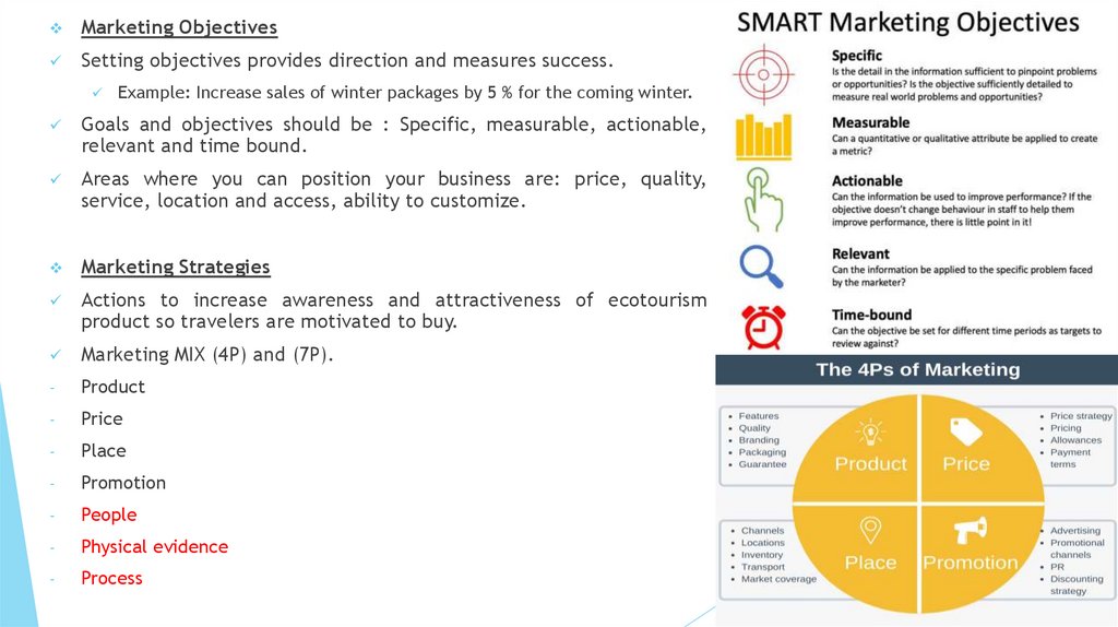 An ecotourism business will be more successful by setting specific marketing objectives and