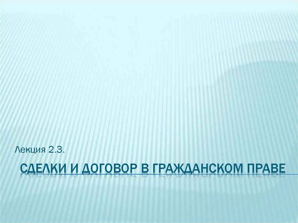 Лекция 2.3.СДЕЛКИ И ДОГОВОР В ГРАЖДАНСКОМ ПРАВЕ