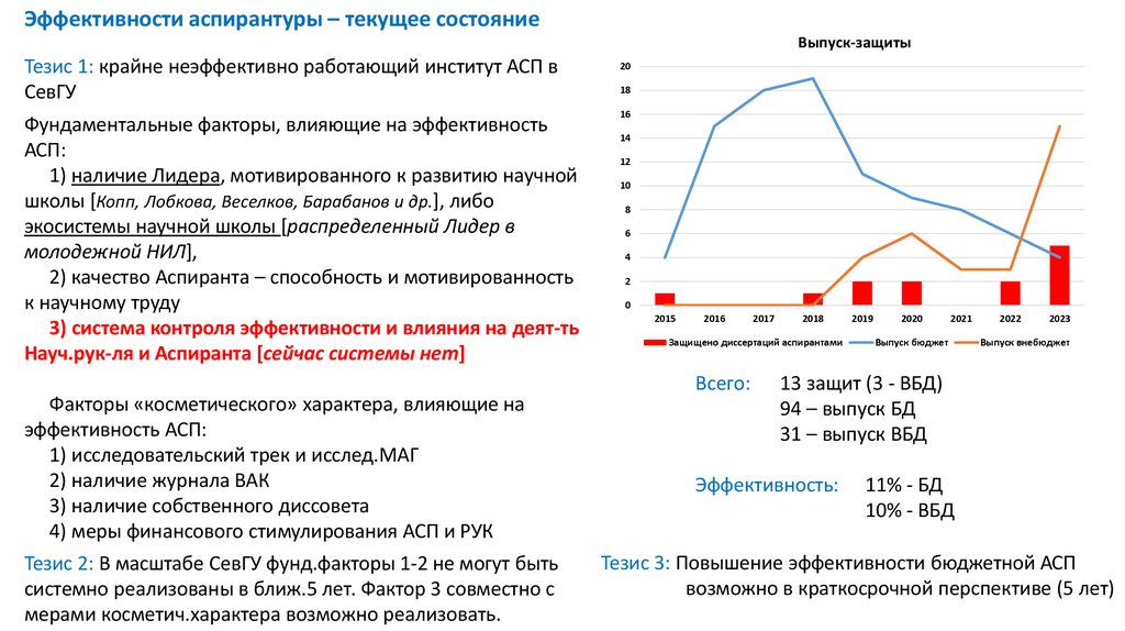 Эффективности аспирантуры – текущее состояниеВыпуск-защиты