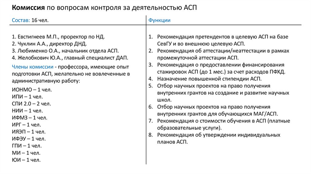 Комиссия по вопросам контроля за деятельностью АСПСостав: 16 чел.