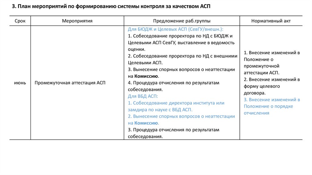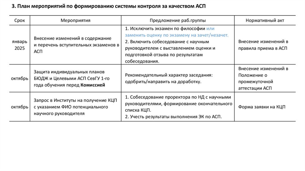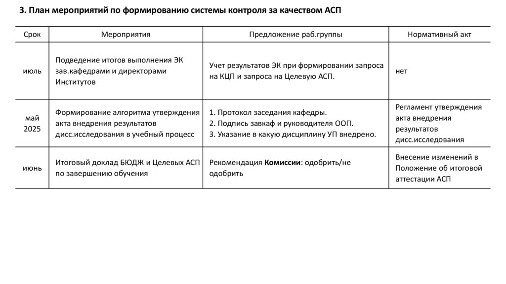 3. План мероприятий по формированию системы контроля за качеством АСПСрок