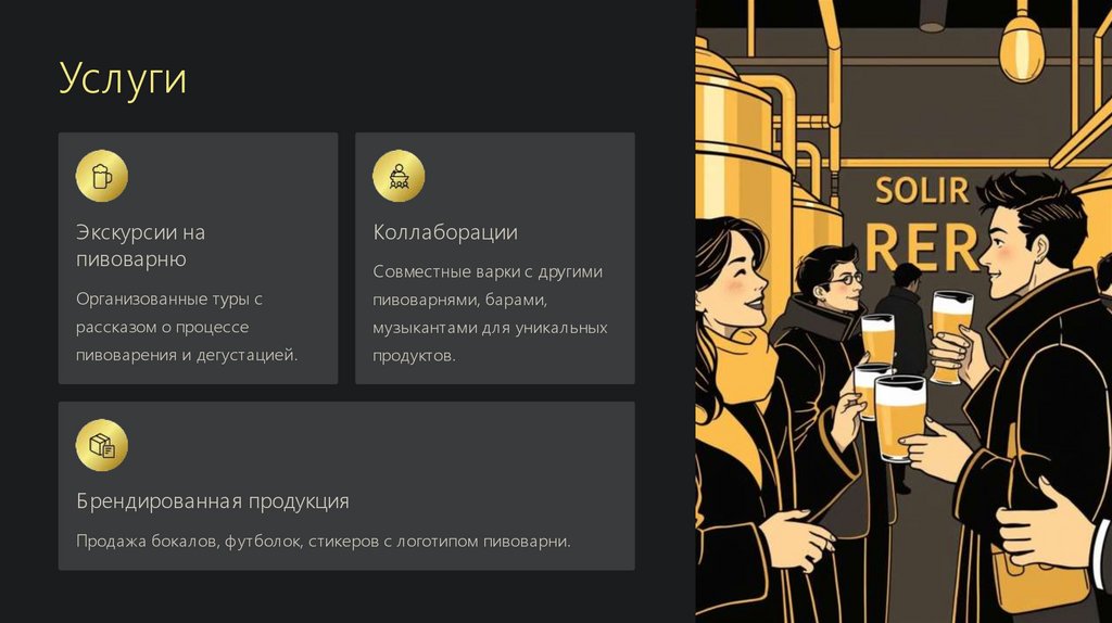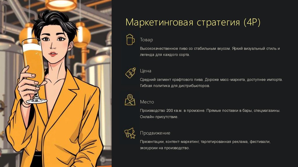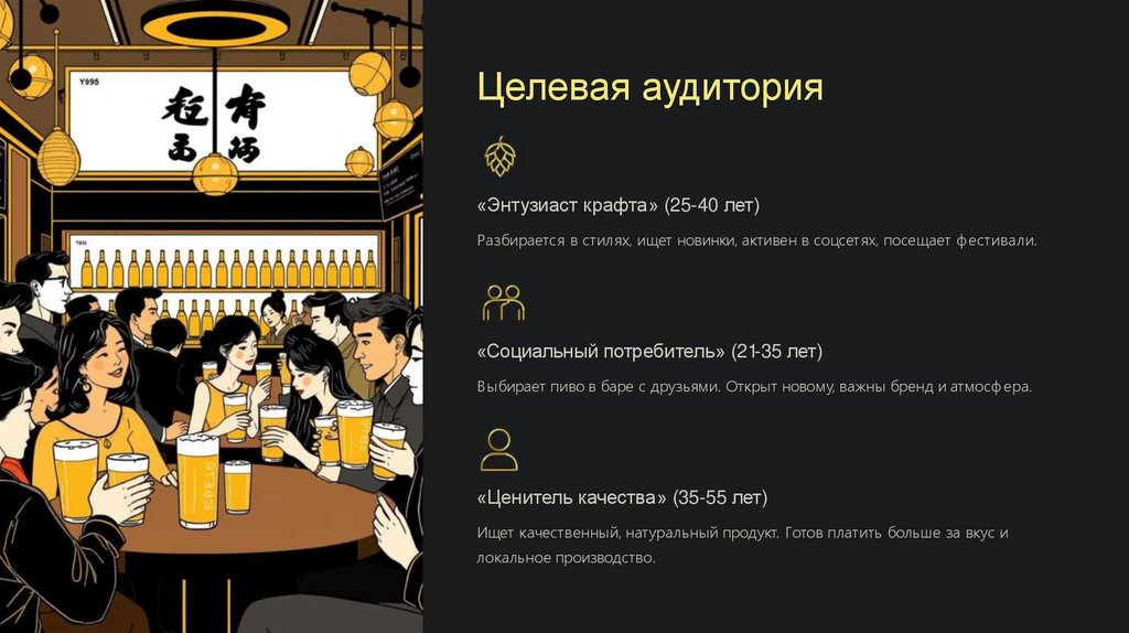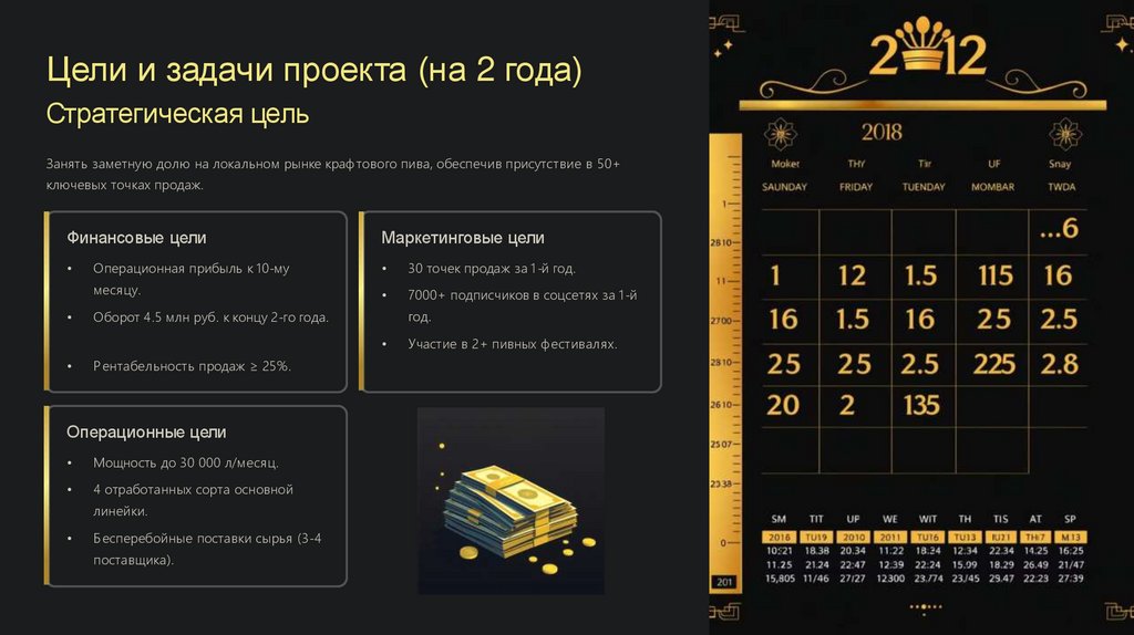 Занять заметную долю на локальном рынке крафтового пива, обеспечив присутствие в 50+