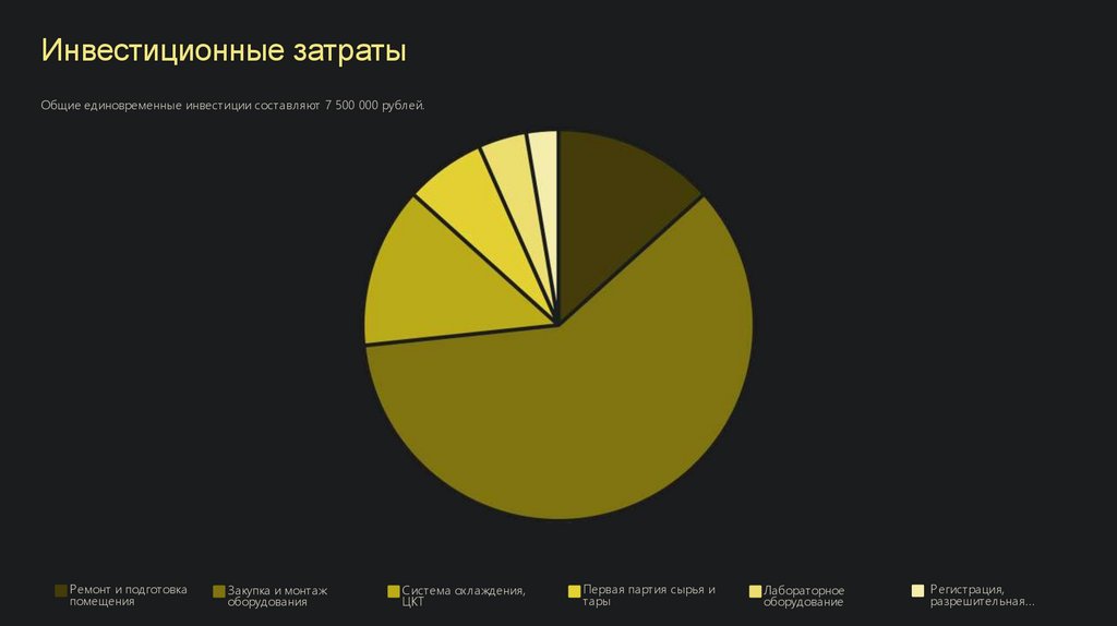 Инвестиционные затратыОбщие единовременные инвестиции составляют 7 500 000 рублей.