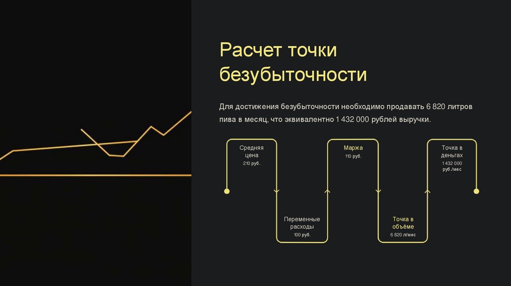 Для достижения безубыточности необходимо продавать 6 820 литров