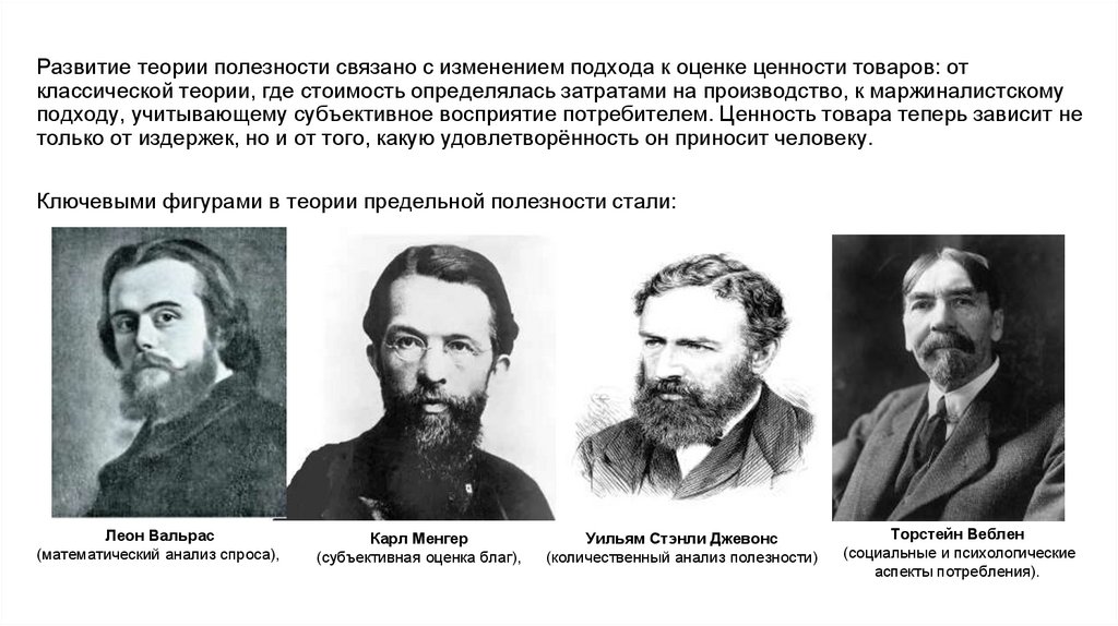 Развитие теории полезности связано с изменением подхода к оценке ценности товаров: отклассической теории, где стоимость определялась затратами на производство, к маржиналистскому