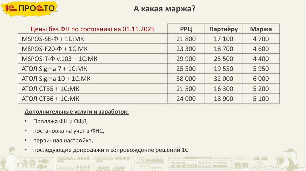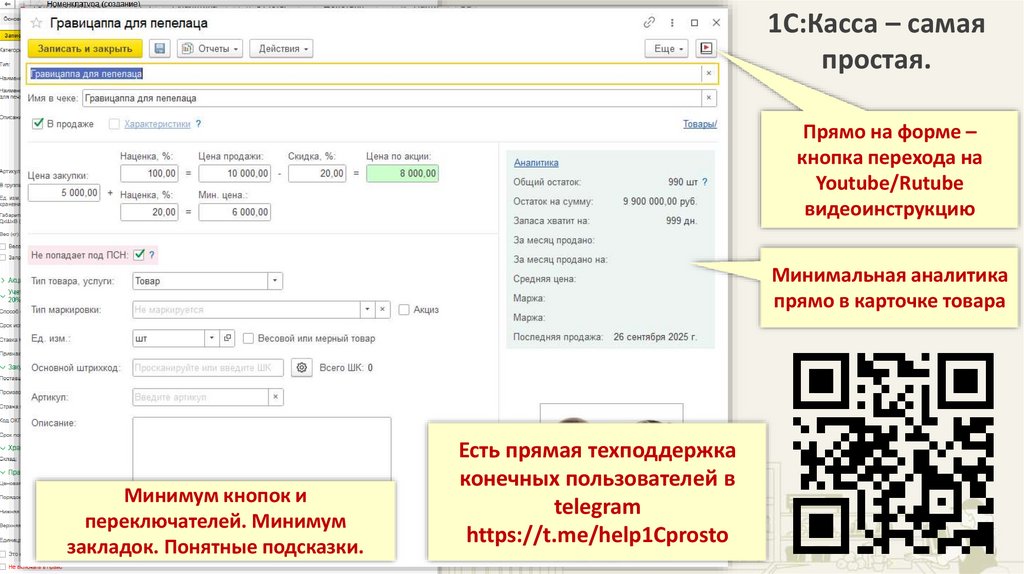 + Удаленная работа, открытие новых точек, апгрейд с подключением к старшей 1С