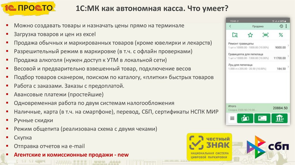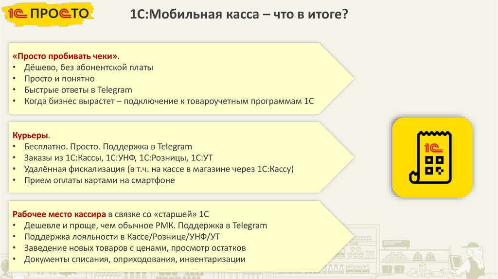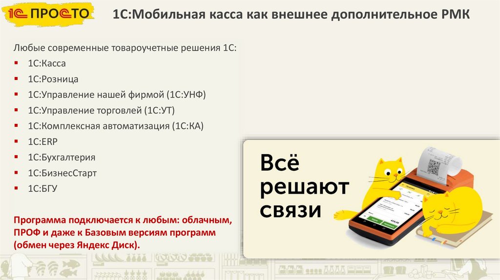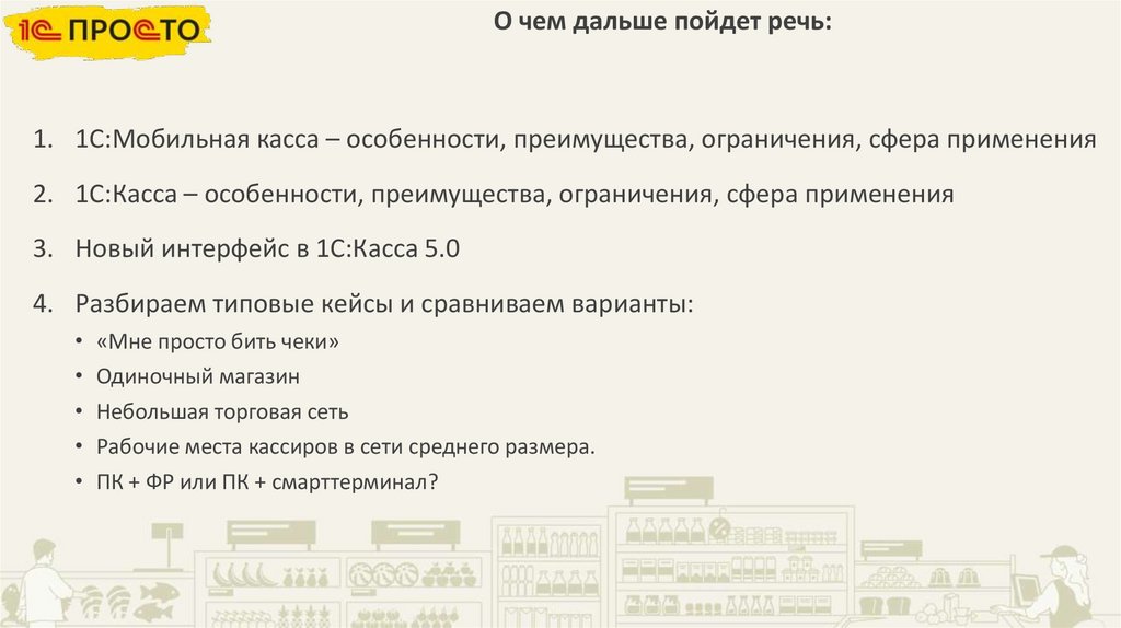О чем дальше пойдет речь:1. 1C:Мобильная касса – особенности, преимущества, ограничения, сфера применения