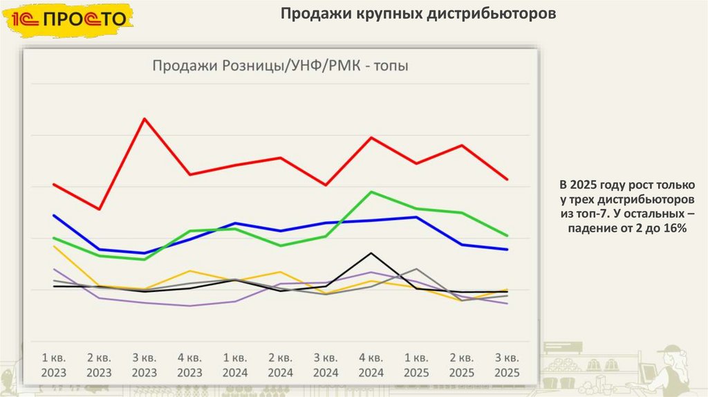 Продажи крупных дистрибьюторовВ 2025 году рост только