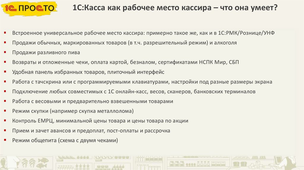 2. 1C:Касса – особенности, преимущества, ограничения, сфера применения