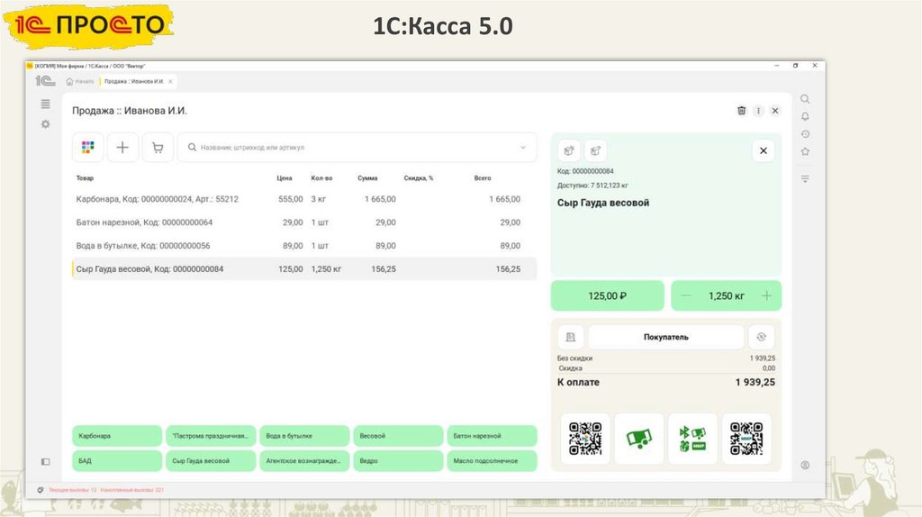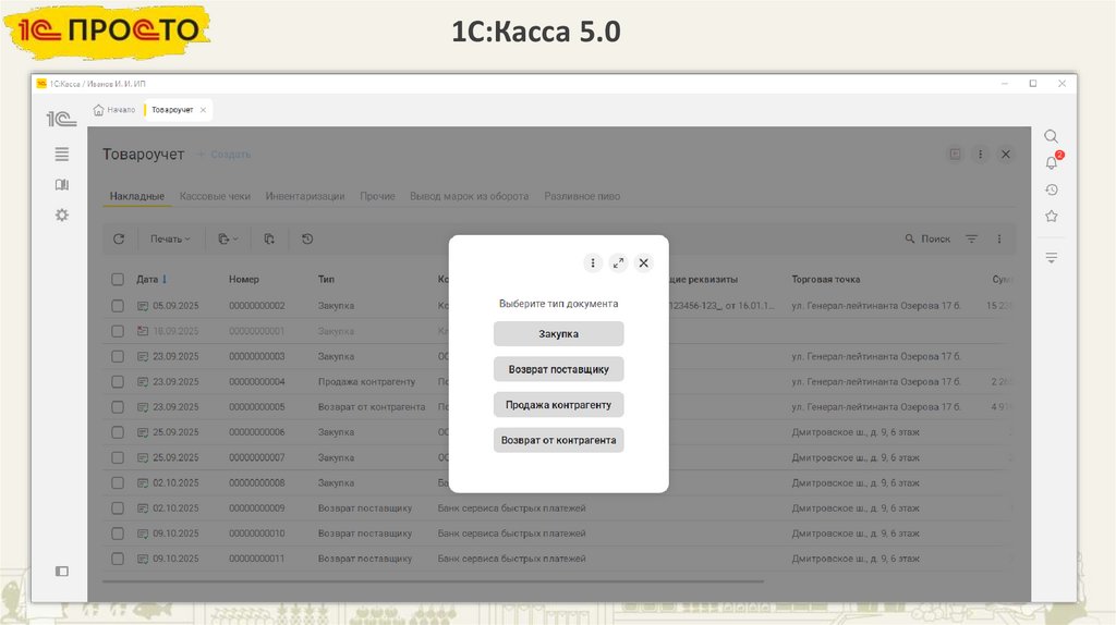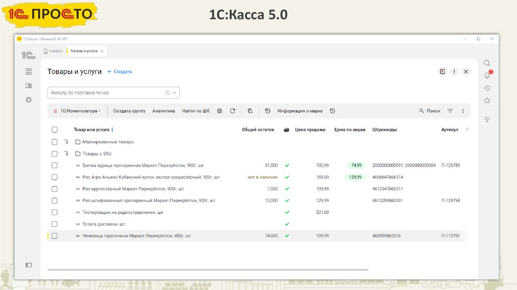+ Функционал в торговых точках зависит от рабочего места кассира (см. далее).