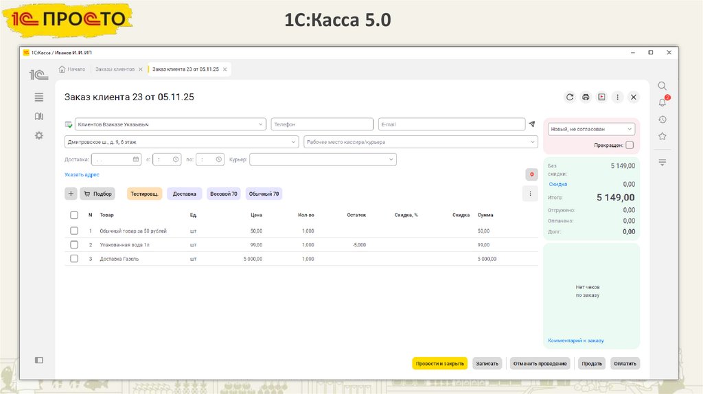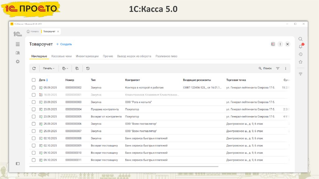- Нет контроля отрицательных остатков. Нет списаний, оприходований.