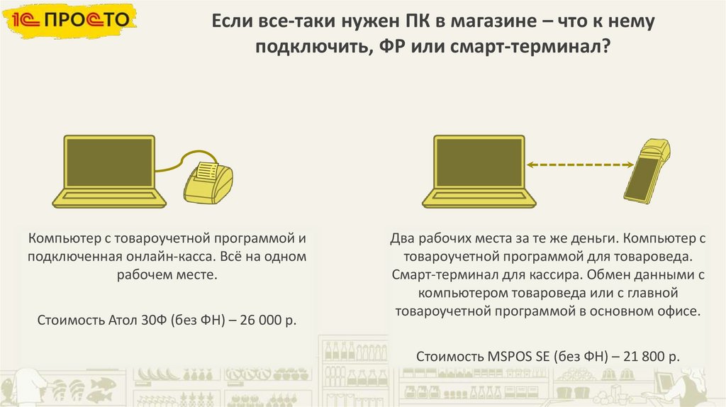 Если все-таки нужен ПК в магазине – что к немуподключить, ФР или смарт-терминал?