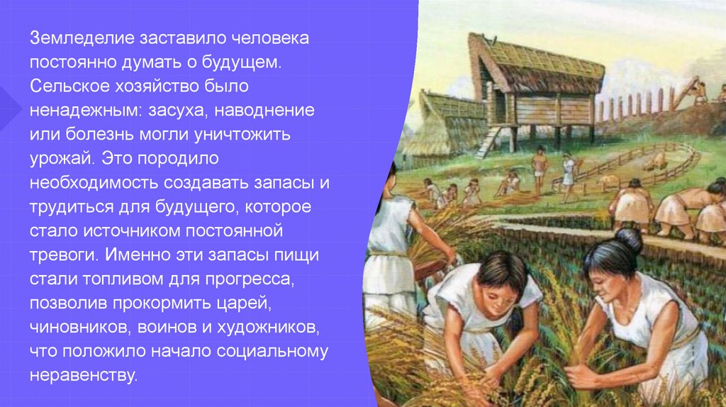 Земледелие заставило человекапостоянно думать о будущем.