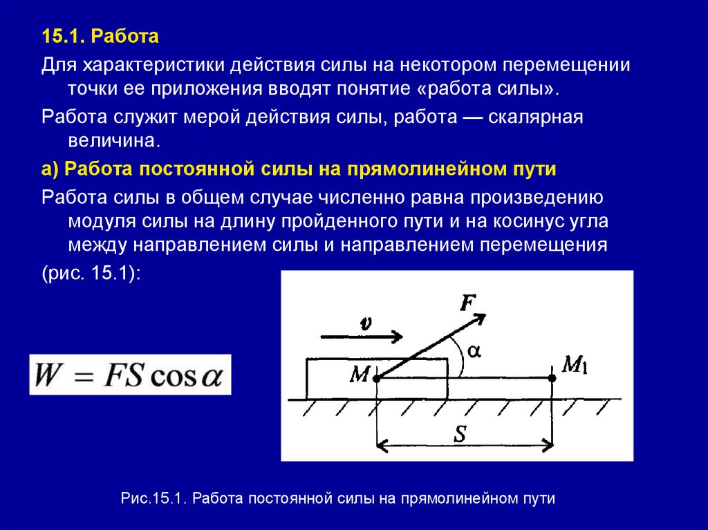 Рис.15.1. Работа постоянной силы на прямолинейном пути