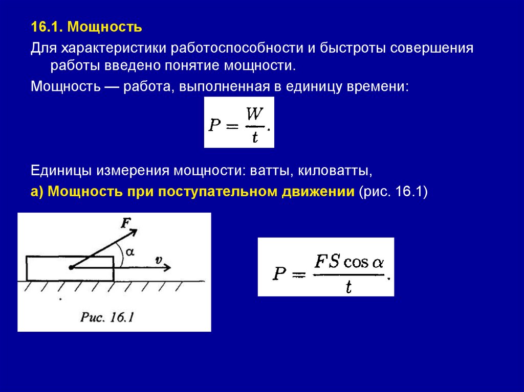 16.1. МощностьДля характеристики работоспособности и быстроты совершения