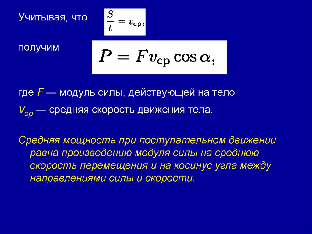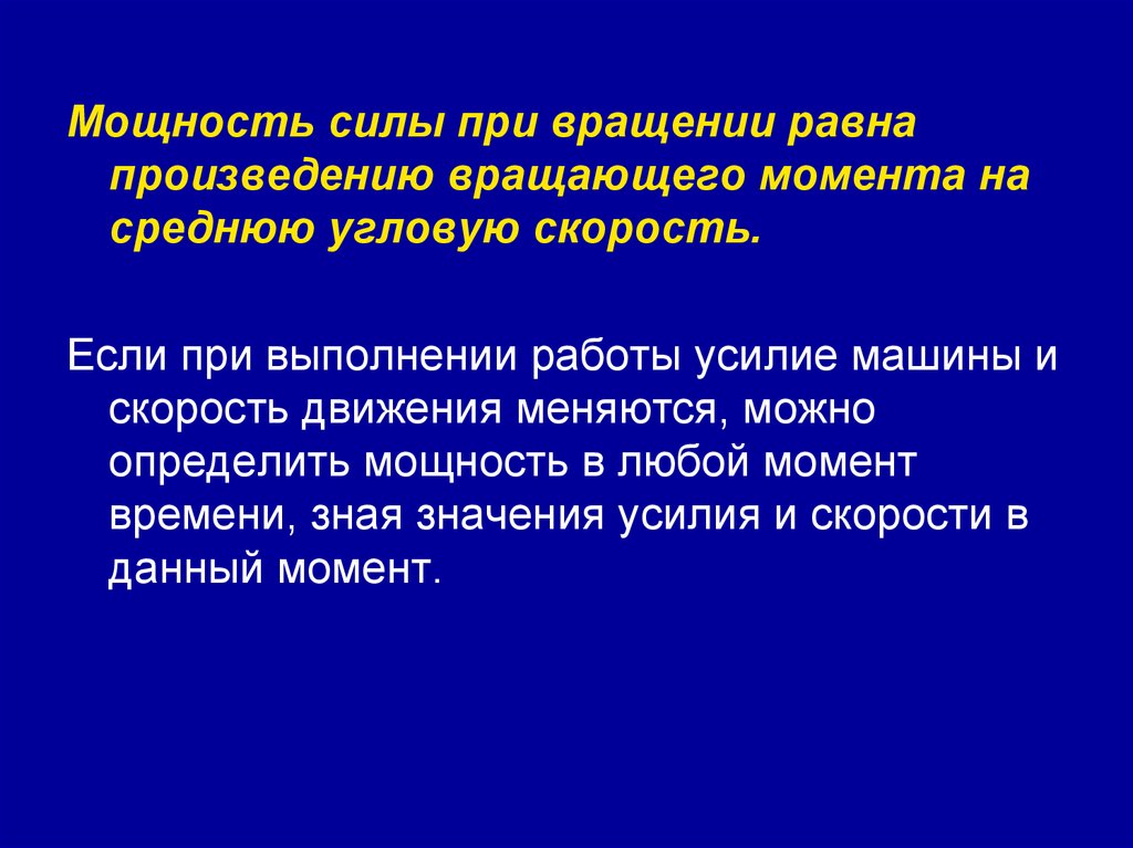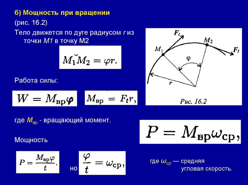 Мощность силы при вращении равнапроизведению вращающего момента на