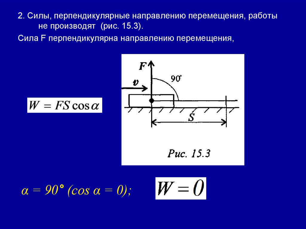 2. Силы, перпендикулярные направлению перемещения, работыне производят (рис. 15.3).