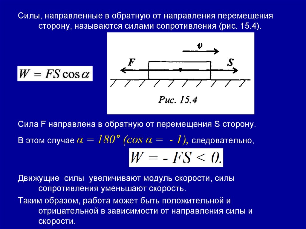 Силы, направленные в обратную от направления перемещениясторону, называются силами сопротивления (рис. 15.4).