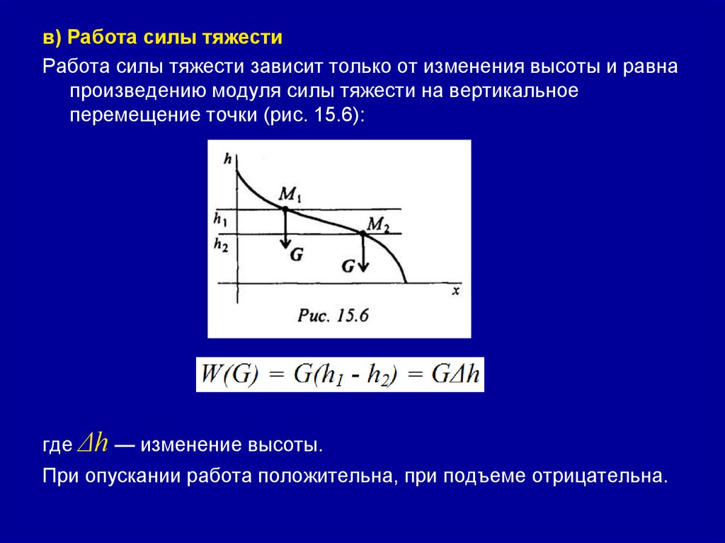 в) Работа силы тяжестиРабота силы тяжести зависит только от изменения высоты и равна