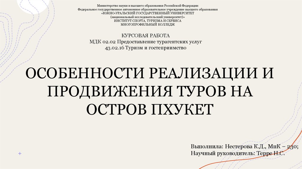 высшего образования«ЮЖНО-УРАЛЬСКИЙ ГОСУДАРСТВЕННЫЙ УНИВЕРСИТЕТ