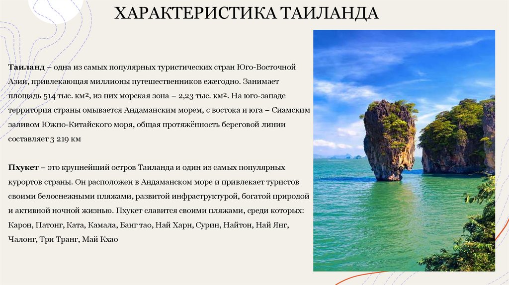 ХАРАКТЕРИСТИКА ТАИЛАНДАТаиланд – одна из самых популярных туристических стран Юго-Восточной