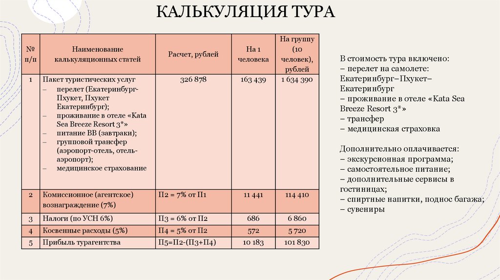 КАЛЬКУЛЯЦИЯ ТУРА№