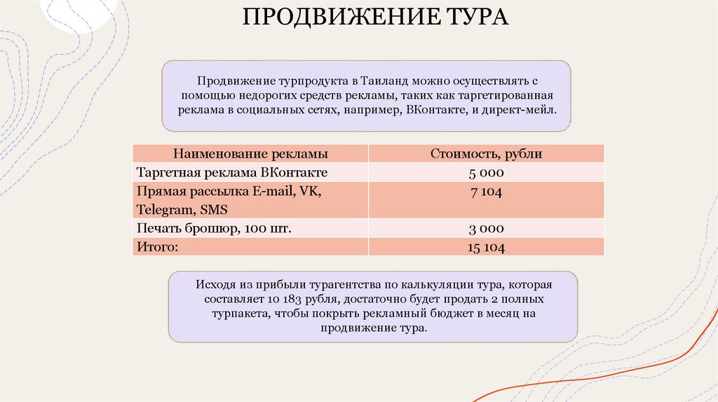 ПРОДВИЖЕНИЕ ТУРАПродвижение турпродукта в Таиланд можно осуществлять с