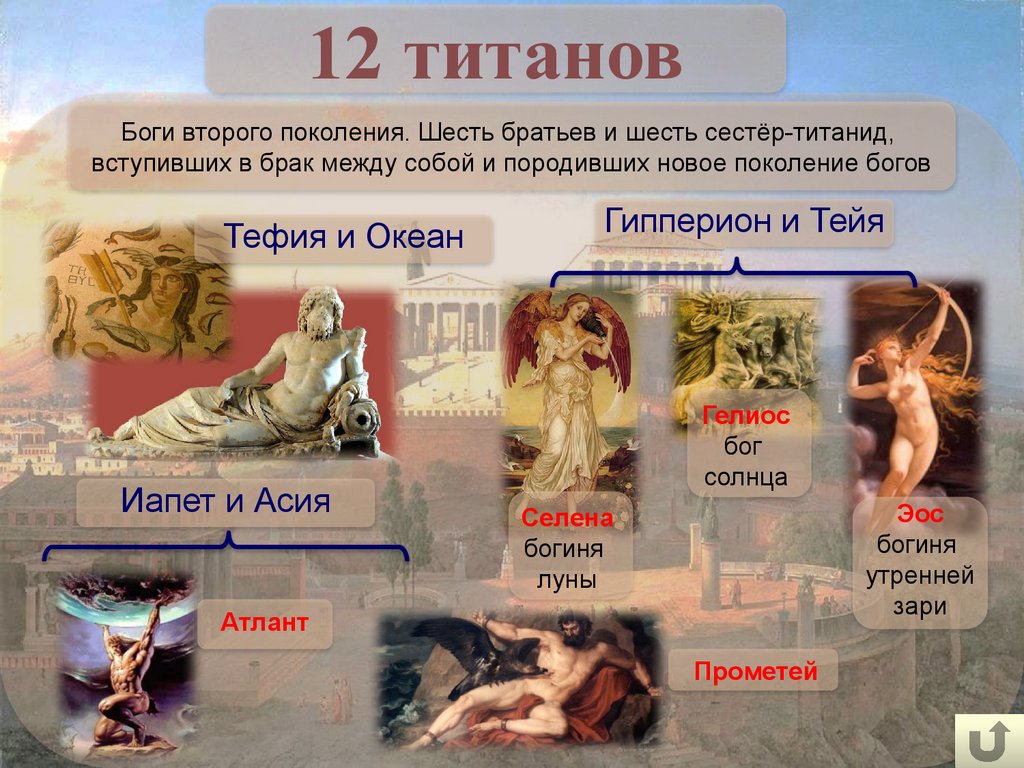 12 титановБоги второго поколения. Шесть братьев и шесть сестёр-титанид,