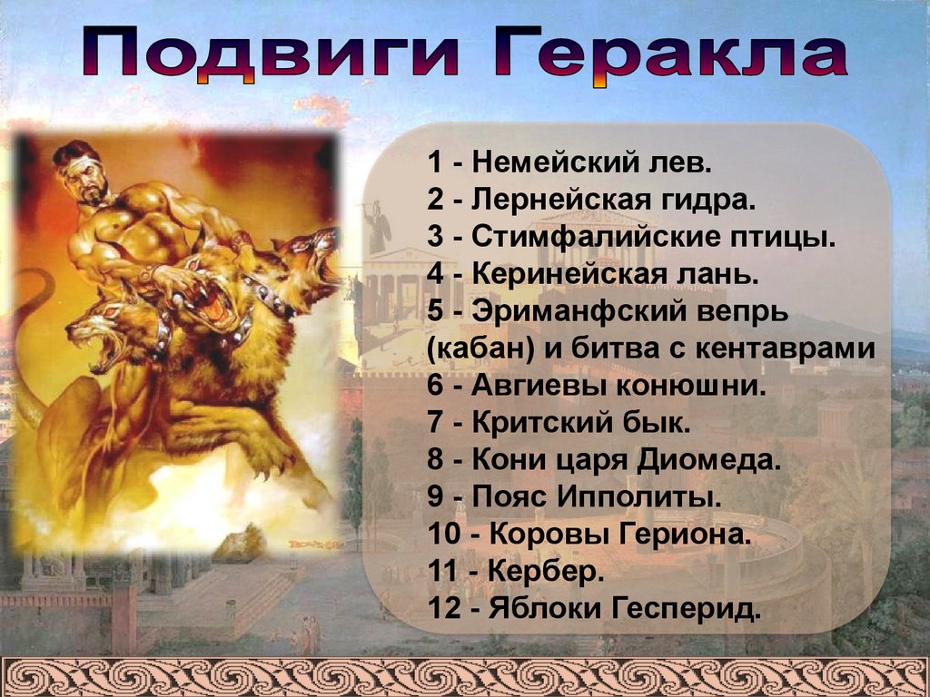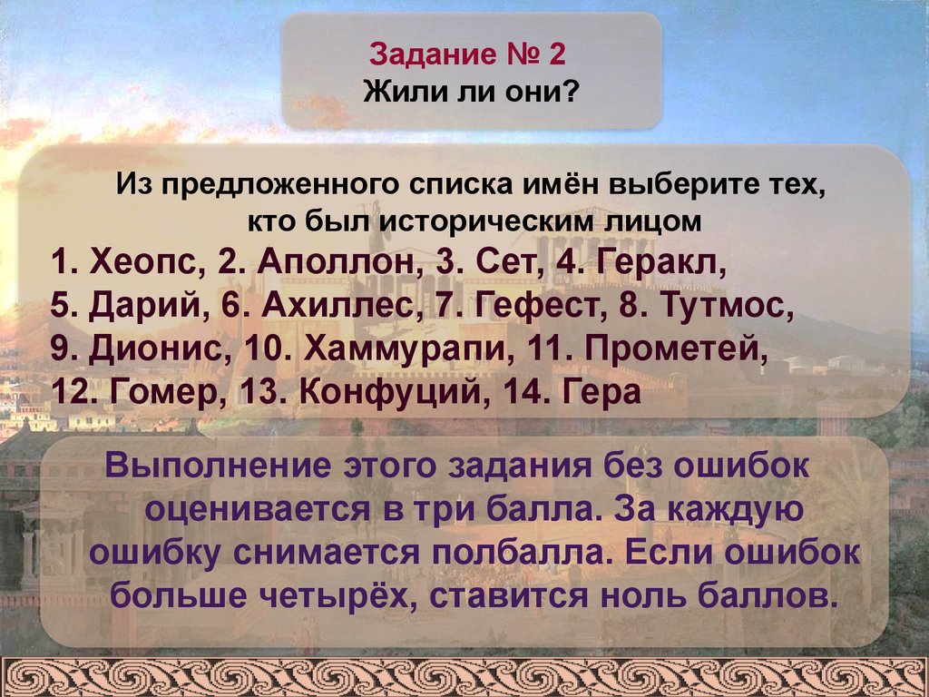 1. Хеопс, 2. Аполлон, 3. Сет, 4. Геракл,