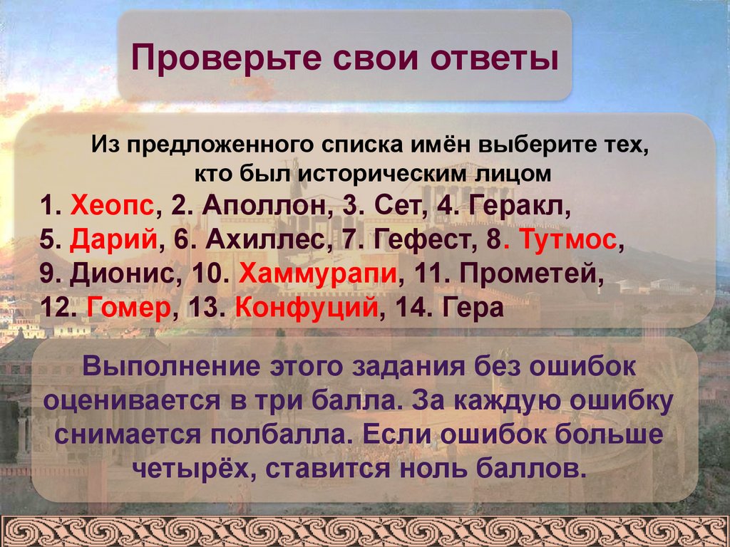 Проверьте свои ответыИз предложенного списка имён выберите тех,
