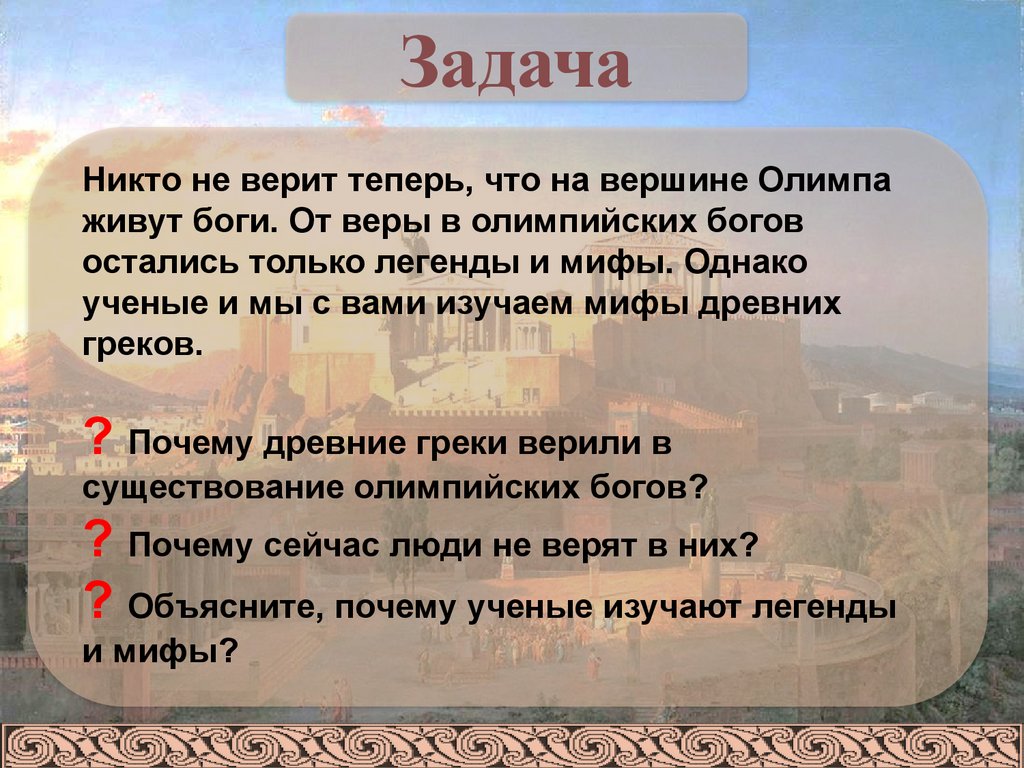 ЗадачаНикто не верит теперь, что на вершине Олимпа