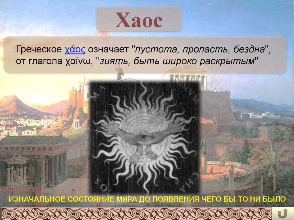 ХаосГреческое χάος означает "пустота, пропасть, бездна",