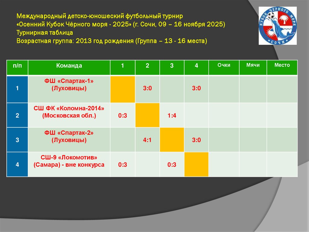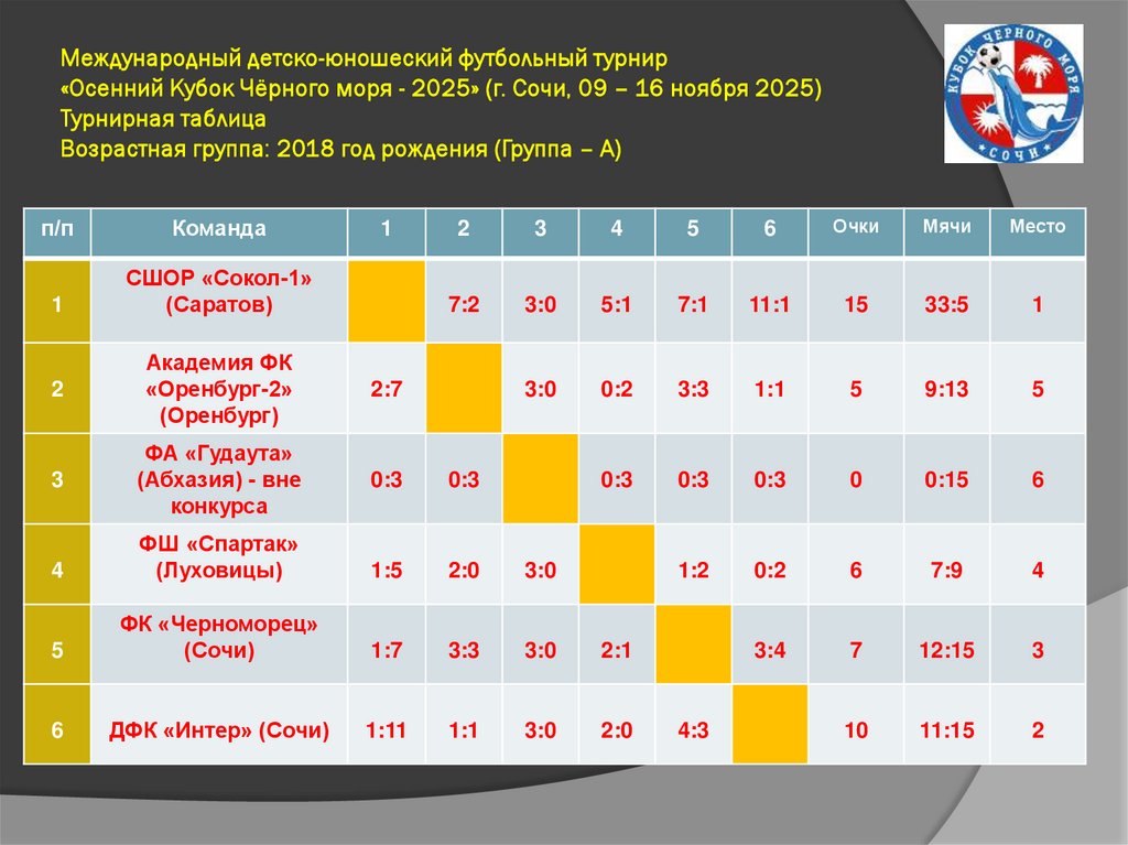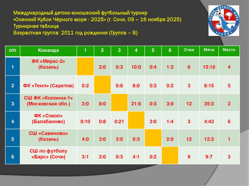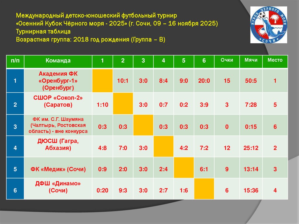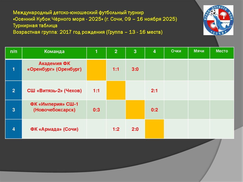 Международный детско-юношеский футбольный турнир«Осенний Кубок Чёрного моря - 2025» (г. Сочи, 09 – 16 ноября 2025)