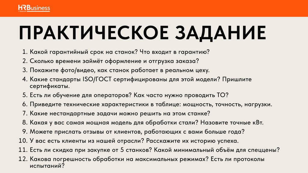 Практическое заданиеКакой гарантийный срок на станок? Что входит в гарантию?