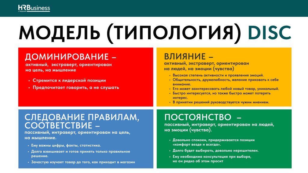 Модель (типология) DISCКаждый тип имеет свой цвет: