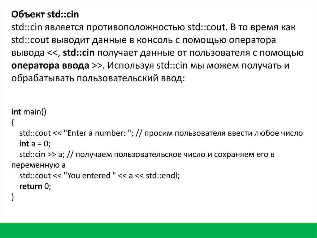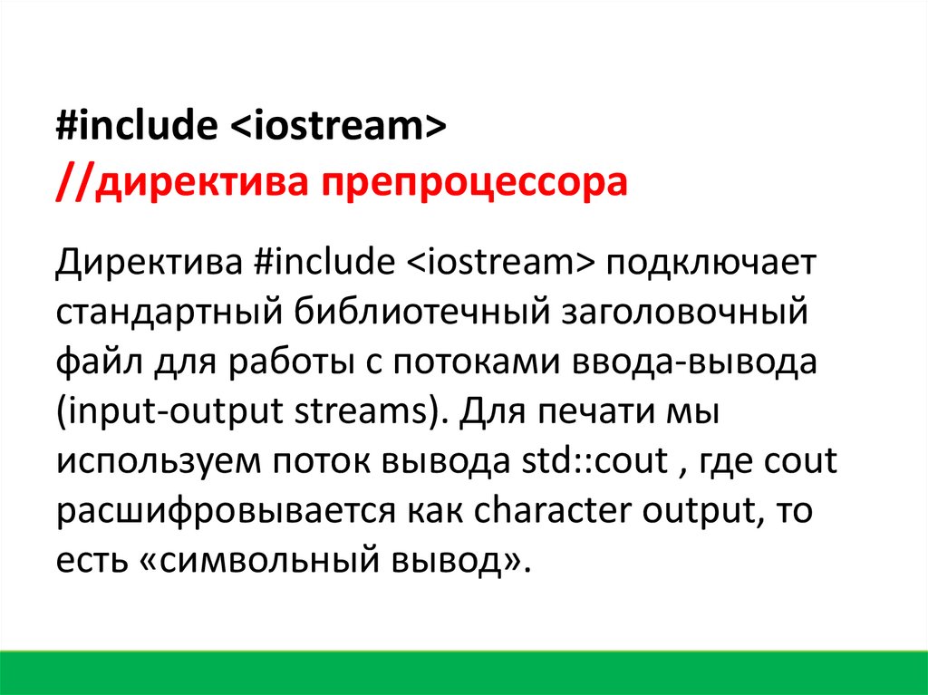 Директива #include <iostream> подключает