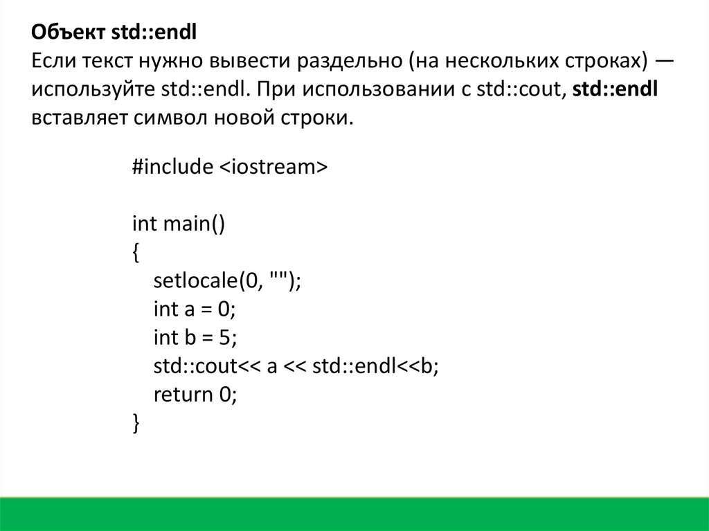 3. std::cout << a << std::endl; // №1