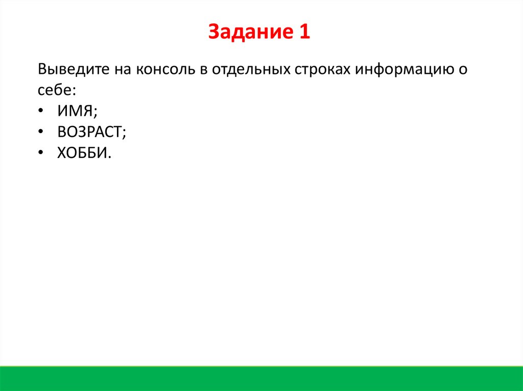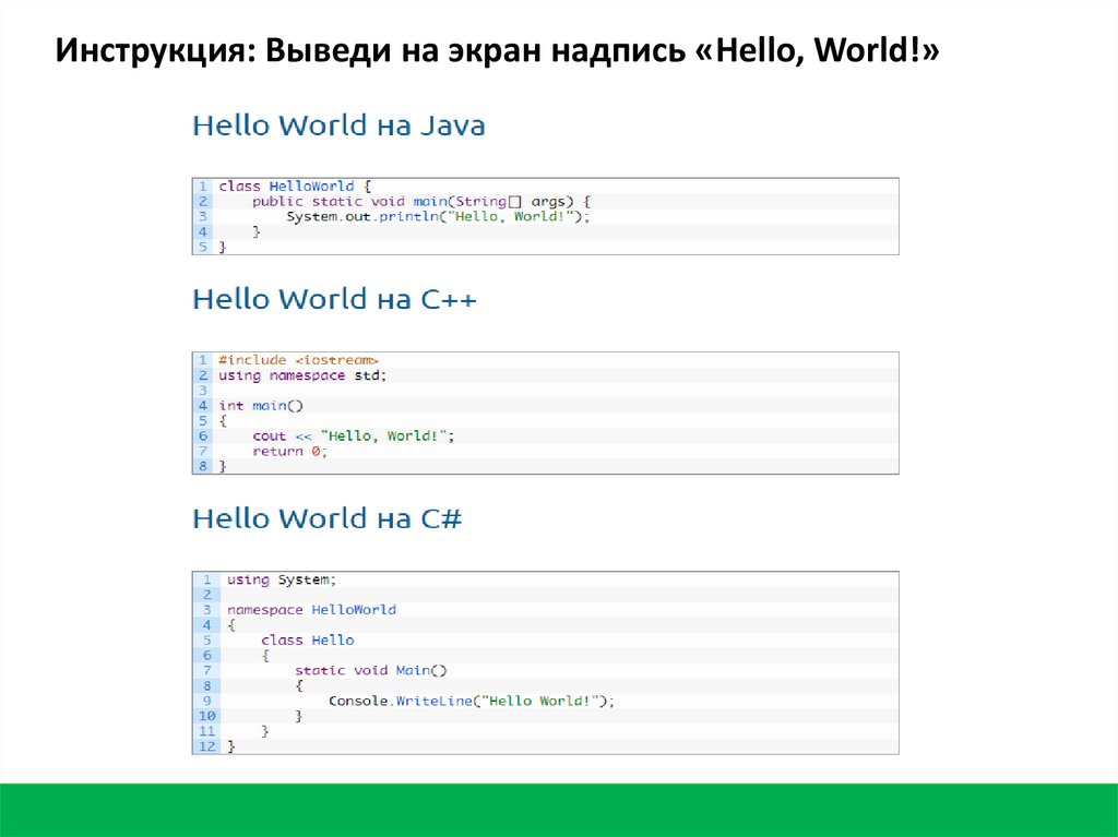 Инструкция: Выведи на экран надпись «Hello, World!»11.