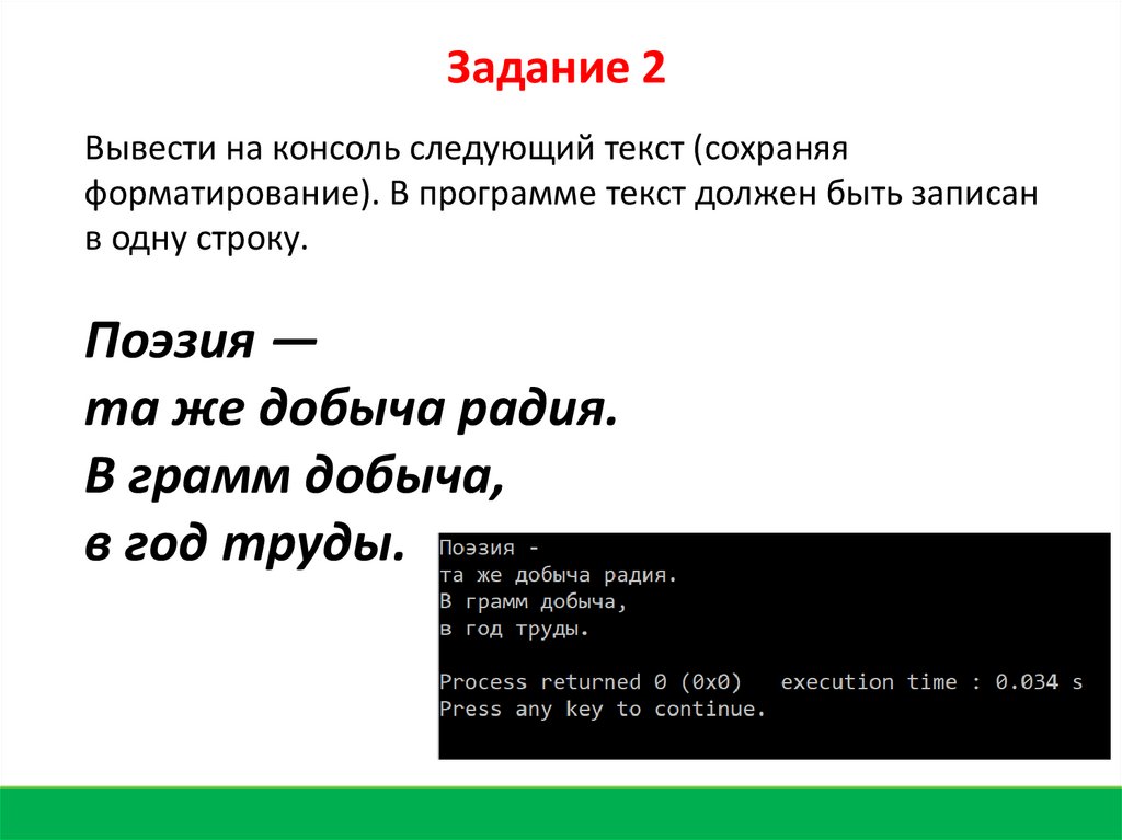 выведены на консоль.