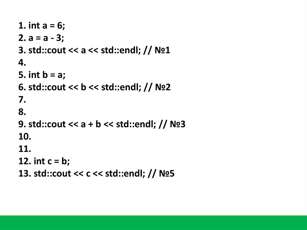 13. std::cout << c << std::endl; // №5