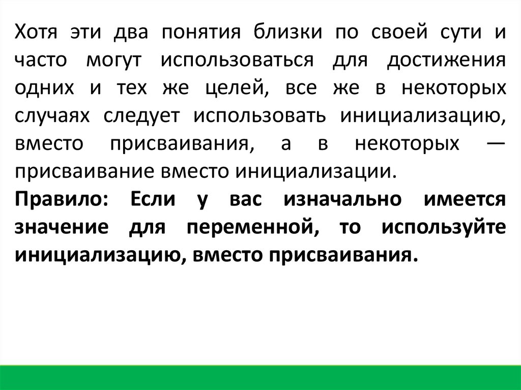 случаях следует использовать инициализацию,