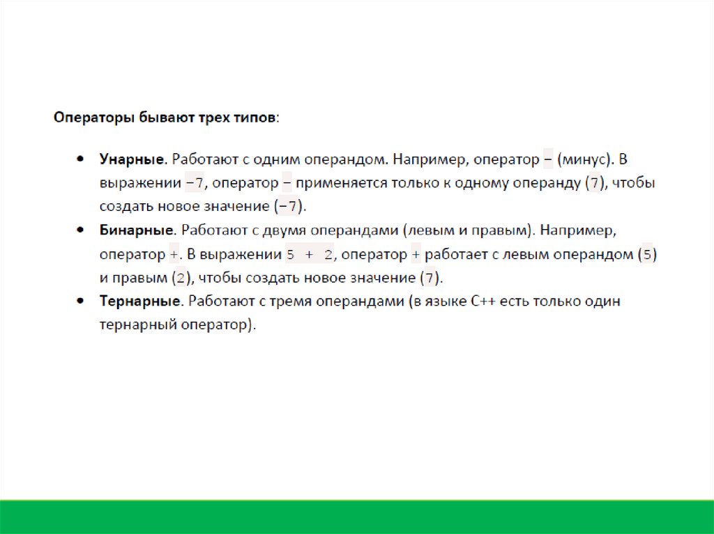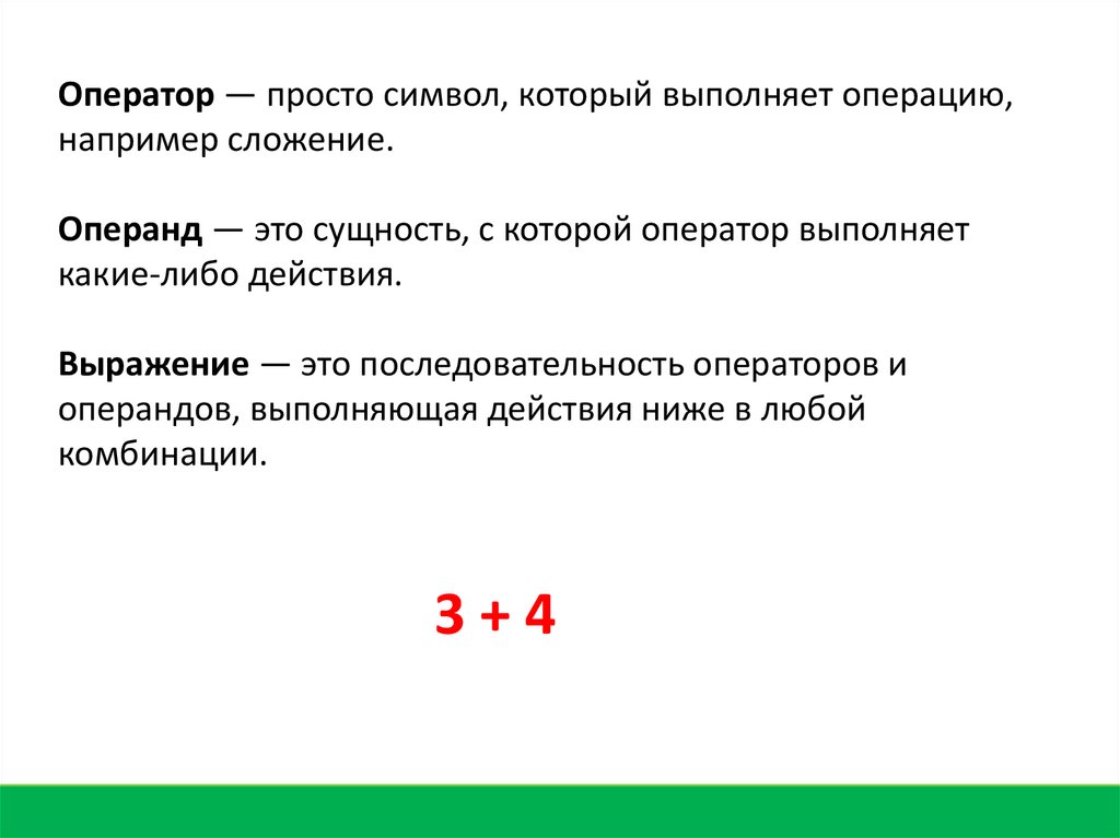 Оператор — просто символ, который выполняет операцию,например сложение.