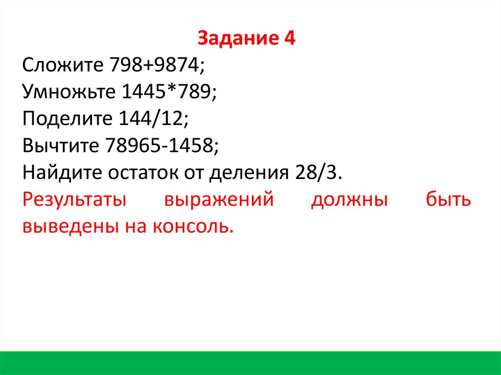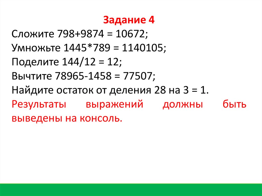 Задание 4Сложите 798+9874 = 10672;