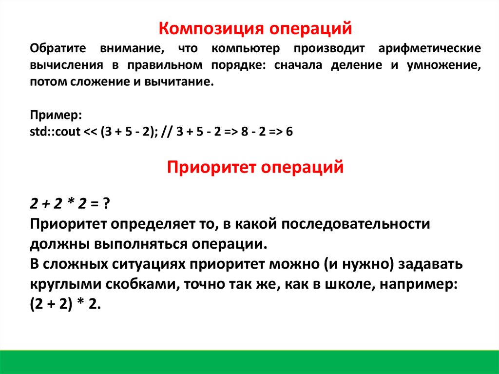 Композиция операцийОбратите внимание, что компьютер производит арифметические